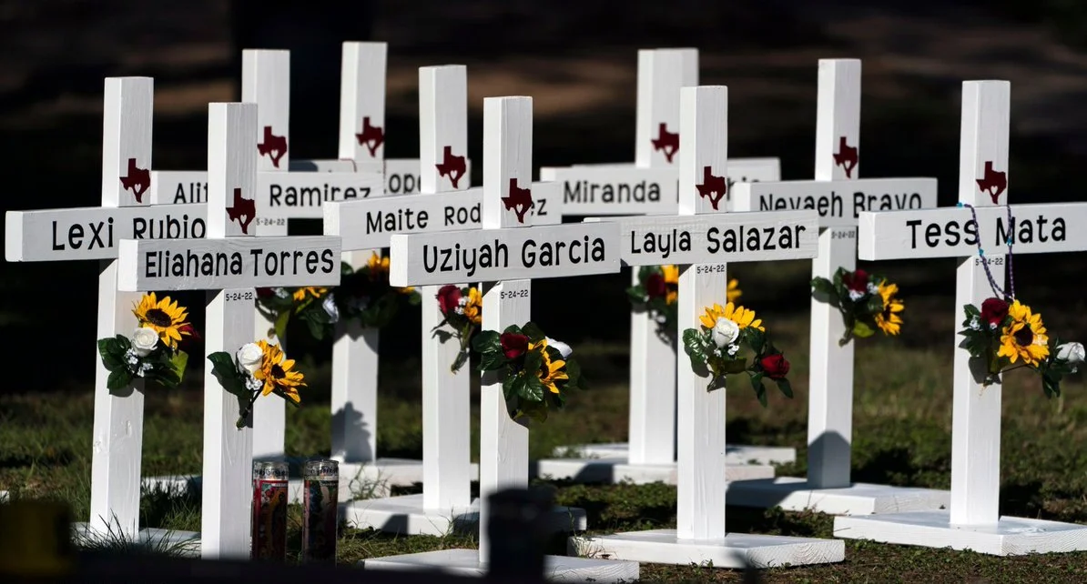 Uvalde, Texas memorial crosses for 19 fourth graders
